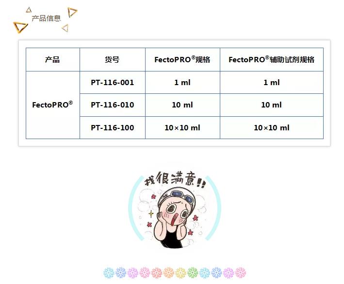 FectoPRO?采用嚴(yán)格管控的生產(chǎn)流程進(jìn)行生產(chǎn)和配置,確保各實驗結(jié)果的高度可重復(fù)性。此外,為了符合現(xiàn)行的監(jiān)管準(zhǔn)則,F(xiàn)ectoPRO?還采用了先進(jìn)的質(zhì)控流程,包括確保批次間的蛋白質(zhì)生產(chǎn)率有絕佳一致性的質(zhì)量指標(biāo)。