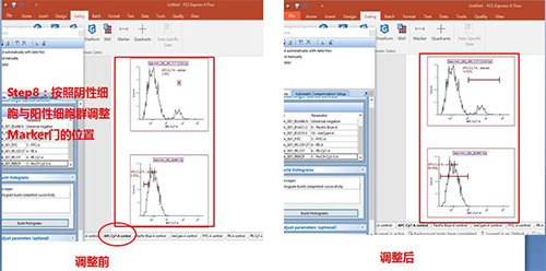 圈好門(mén)之后,選中單管Control版面,按照陰性細(xì)胞與陽(yáng)性細(xì)胞的位置調(diào)整Marker門(mén)的位置。