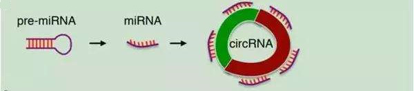 直到2012年,Salzman的一篇環(huán)狀RNA文章為其正名,于是大量的研究者涌入這個領域,不斷產出環(huán)狀RNA的研究成果。目前研究較多的就是位于細胞質中的外顯子形成的環(huán)狀RNA,其含有大量miRNA結合位點,可起到miRNA海綿作用,結合并封閉miRNA的調控作用,從而使其靶基因表達增強。
