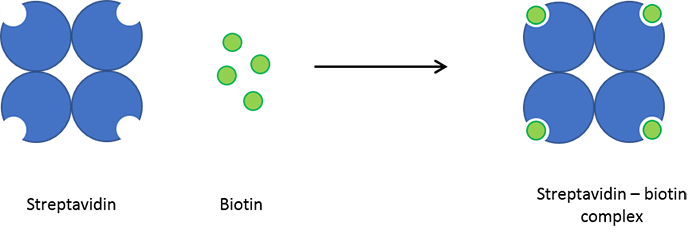 這對(duì)具有高親和力的蛋白常被偶聯(lián)到抗體或蛋白,其中biotin常被偶聯(lián)到抗體或配體,streptavidin偶聯(lián)標(biāo)記物如熒光素、HRP或AP、NanoGold等,如此通過Biotin—Streptavidin橋連來可實(shí)現(xiàn)間接檢測(cè)靶標(biāo)。