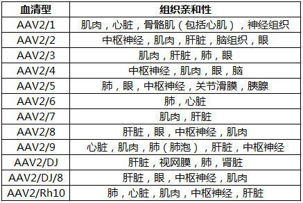 目前發(fā)現(xiàn)的AAV有AAV1~AAV11、DJ等12種不同的血清型,主要區(qū)別在于衣殼蛋白Cap的不同,并決定不同血清型AAV對(duì)不同的組織和細(xì)胞有不同的感染效率。