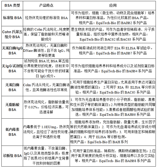 牛血清白蛋白Albumin from bovine serum,BSA,又稱為組分V或Cohn V,名稱起源于BSA的分餾法——Cohn 冷乙醇法, Cohn 冷乙醇法是由哈佛大學Edwin Cohn教授于1946年發(fā)明的。當時基于戰(zhàn)爭創(chuàng)傷治療對注射級別蛋白的大規(guī)模需求,Cohn教授在較低的溫度下改變血漿的乙醇濃度和pH值,使其所含蛋白在不同乙醇濃度下析出,在第五個析出的組分中主要成分為BSA,所以BSA又稱組分V或Cohn V。Cohn法仍然是目前非常普遍的BSA分餾法。 美國大的生物原材料供應商Equitech-Bio提供經(jīng)典冷乙醇法和先進的熱休克法純化的高質量、分類齊全的BSA,助力您的實驗!