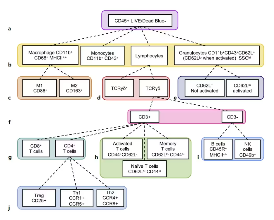 大鼠模型是生物醫(yī)學(xué)研究中重要的資源,因與人類免疫系統(tǒng)相似,而常被用于免疫相關(guān)的功能研究。然而目前小鼠模型在基礎(chǔ)和機(jī)制免疫學(xué)研究中占主導(dǎo)地位,相對缺乏對大鼠模型中免疫細(xì)胞的流式分析鑒定。本文將分享對大鼠常見免疫細(xì)胞的流式鑒定方案,鑒定分析不同組織中的粒細(xì)胞、巨噬細(xì)胞、T細(xì)胞、B細(xì)胞及NK細(xì)胞。