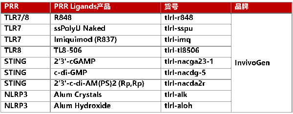 天然免疫專家InvivoGen可提供包括TLR7/8、RIG-I、炎癥小體NLRP3等一系列天然免疫通路的刺激劑/抑制劑、相關(guān)報告基因細胞和檢測試劑等。