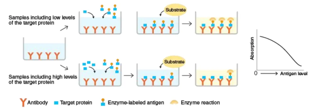 1、樣本中分析物水平較低可以使用哪些方法改進(jìn)檢測(cè)?通過(guò)增加洗滌次數(shù)和兩次洗滌之間的浸泡時(shí)間降低背景。控制測(cè)定精確度。例如,在移液時(shí)要更加小心和一致,使用干凈的紙巾拍板,以避免污染。增加孵育時(shí)間。但這通常也會(huì)增加背景,因此檢測(cè)靈敏度不一定會(huì)增加。如果可以的話,建議濃縮樣本。使用5-PL曲線擬合方法,更準(zhǔn)確地計(jì)算標(biāo)準(zhǔn)曲線下端的樣本濃度。在大多數(shù)情況下,樣本可能只含有非常低或無(wú)法檢測(cè)到的分析物水平。這時(shí)無(wú)論如何操作和測(cè)定,仍然無(wú)法檢測(cè)到準(zhǔn)確濃度。2、包板應(yīng)如何存放?如果包被完抗體的板不能立即使用,應(yīng)將其密封并在4°C儲(chǔ)存過(guò)夜。3、為什么使用同一克隆號(hào)的捕獲抗體和檢測(cè)抗體建立ELISA實(shí)驗(yàn)沒(méi)有成功?如果使用相同的克隆抗體進(jìn)行檢測(cè)和捕獲,則抗原表位可能已經(jīng)被其中一種抗體占據(jù)并抑制另一抗體結(jié)合。建議捕獲和檢測(cè)抗體選擇不同的克隆號(hào)。4、應(yīng)該使用哪種包被緩沖液?一般來(lái)說(shuō),建議使用PBS(pH 7.4)或碳酸鹽緩沖液(pH 9.5)。確切的包被緩沖液可能取決于要檢測(cè)的細(xì)胞因子。5、為什么細(xì)胞因子流式染色與ELISA測(cè)定之間沒(méi)有良好的相關(guān)性?流式細(xì)胞術(shù)檢測(cè)的胞內(nèi)細(xì)胞因子代表檢測(cè)時(shí)的陽(yáng)性細(xì)胞比例,ELISA代表細(xì)胞因子隨時(shí)間的積累量??赡苌倭康年?yáng)性細(xì)胞在一段時(shí)間之后會(huì)分泌大量的細(xì)胞因子于培養(yǎng)上清中,導(dǎo)致ELISA的結(jié)果與胞內(nèi)因子染色的結(jié)果不一致6、可以使用細(xì)胞培養(yǎng)板進(jìn)行ELISA實(shí)驗(yàn)嗎?不可以。細(xì)胞培養(yǎng)板設(shè)計(jì)用于達(dá)到細(xì)胞培養(yǎng)目的,通常不具有高蛋白結(jié)合能力。對(duì)于ELISA,建議使用具有高蛋白結(jié)合能力的板,例如 Nunc Maxisorp?酶標(biāo)板。7、血清等樣本可以重復(fù)使用嗎?不建議重復(fù)使用樣本。為了獲得準(zhǔn)確的結(jié)果,樣本應(yīng)分裝儲(chǔ)存,僅供一次性使用。如果重復(fù)使用樣本,需要進(jìn)行額外的驗(yàn)證實(shí)驗(yàn),以確保實(shí)驗(yàn)準(zhǔn)確性。8、在什么步驟中,可以暫停ELISA實(shí)驗(yàn)?可以冷凍板子以備后用嗎?最好遵循說(shuō)明書(shū)操作,沒(méi)有任何可以暫停實(shí)驗(yàn)的步驟。但是,如果一定需要暫停實(shí)驗(yàn),建議在封閉步驟(包被捕獲抗體后)??梢栽诳字屑尤?00 μL封閉緩沖液,并將板在4°C過(guò)夜(信號(hào)損失最小或沒(méi)有)或在-20°C冷凍幾天(可能會(huì)對(duì)信號(hào)產(chǎn)生一些影響)。不建議在第一步進(jìn)行(在4°C用捕獲抗體包被超過(guò)16-20小時(shí)),因?yàn)榭赡軙?huì)導(dǎo)致高背景。9、包被捕獲抗體可以超過(guò)過(guò)夜的時(shí)間嗎?通常來(lái)說(shuō),建議在4°C包被16-20小時(shí)。較長(zhǎng)的孵育時(shí)間可能會(huì)增加與板結(jié)合的捕獲抗體量,會(huì)增加背景。10、培養(yǎng)基中的酚紅會(huì)干擾ELISA測(cè)定嗎?不會(huì),培養(yǎng)基中酚紅的吸光度可以在計(jì)算時(shí),通過(guò)扣除空白孔中本底的吸光度而消去,因此不會(huì)干擾ELISA測(cè)定的讀數(shù)。11、對(duì)于一些ELISA試劑盒,為什么血清樣本需要稀釋?zhuān)?血清樣本稀釋可以盡量減少樣本和標(biāo)準(zhǔn)品之間的基質(zhì)差異,以獲得更加準(zhǔn)確的結(jié)果。12、如何提高ELISA檢測(cè)獲得更好的信號(hào)和靈敏度?增加孵育時(shí)間,但這也可能會(huì)增加檢測(cè)的背景,同時(shí)不改變靈敏度。在孵育步驟中搖動(dòng)板子。確保標(biāo)準(zhǔn)品在使用前完全溶解。在兩次洗滌之間增加浸泡時(shí)間,以進(jìn)一步降低背景。如果可以的話,在450-570 nm處讀板以減去本底。通過(guò)控制移液誤差或使用更大體積的洗滌緩沖液洗滌來(lái)改善CV值。使用5-PL或4-PL曲線擬合方法,而不是線性曲線擬合。